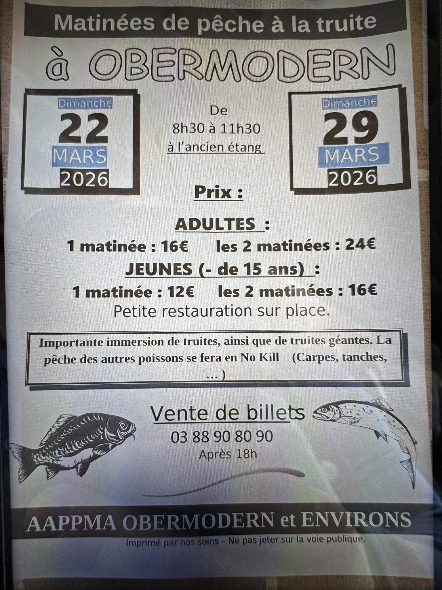 L’Association de Pêche d’Obermodern et Environs organise une matinée « pêche à la truite » le dimanche 29 mars à l’ancien étang.