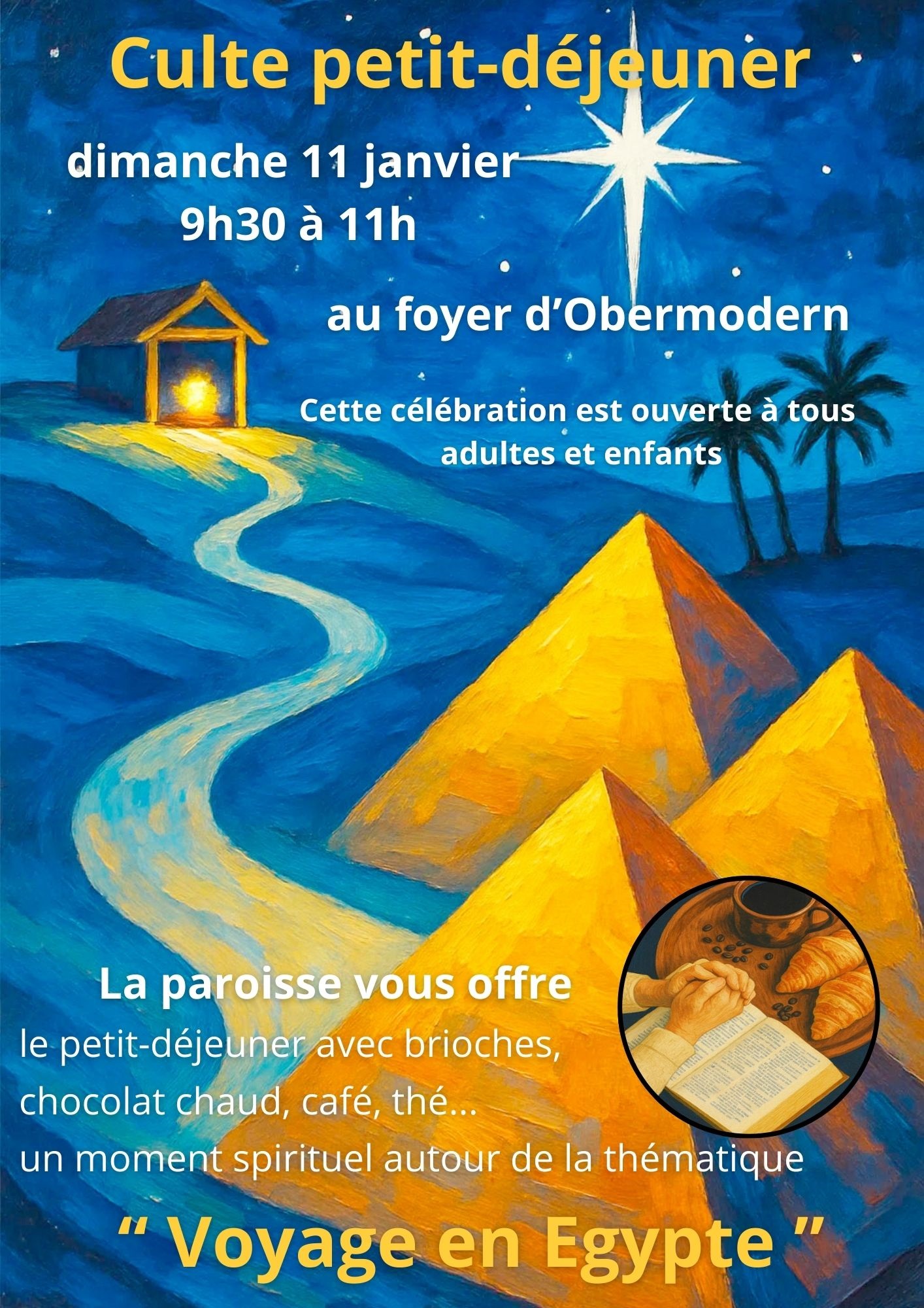 Dimanche 11 janvier 2026 à 9h30, venez prendre votre petit déjeuner en famille au foyer paroissial. La paroisse vous offre le petit-déjeuner avec brioches, chocolat chaud, café, thé. Un moment spirituel autour de la thématique "Voyage en Egypte" Chaleureuse invitation pour ce moment de partage et de célébration différent ! […]